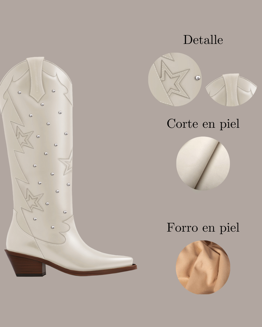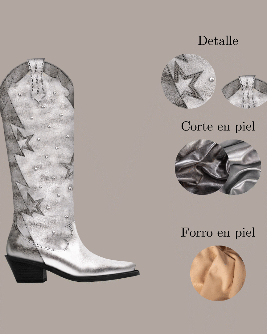 Nuestra Colección Estrella: botas exclusivas hechas 100% en piel, diseñadas para iluminar tu camino con elegancia y autenticidad mexicana.